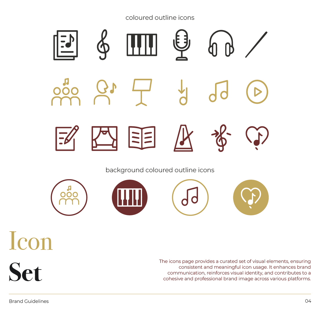 The visual direction focused on creating a timeless and expressive identity that reflects musical craftsmanship and professionalism. A restrained colour palette was developed to balance warmth and sophistication, supported by elegant typography and custom iconography. The website concept prioritised clarity, hierarchy, and visual rhythm, allowing different content types—such as lessons, performances, and compositions—to sit comfortably within the same system.
